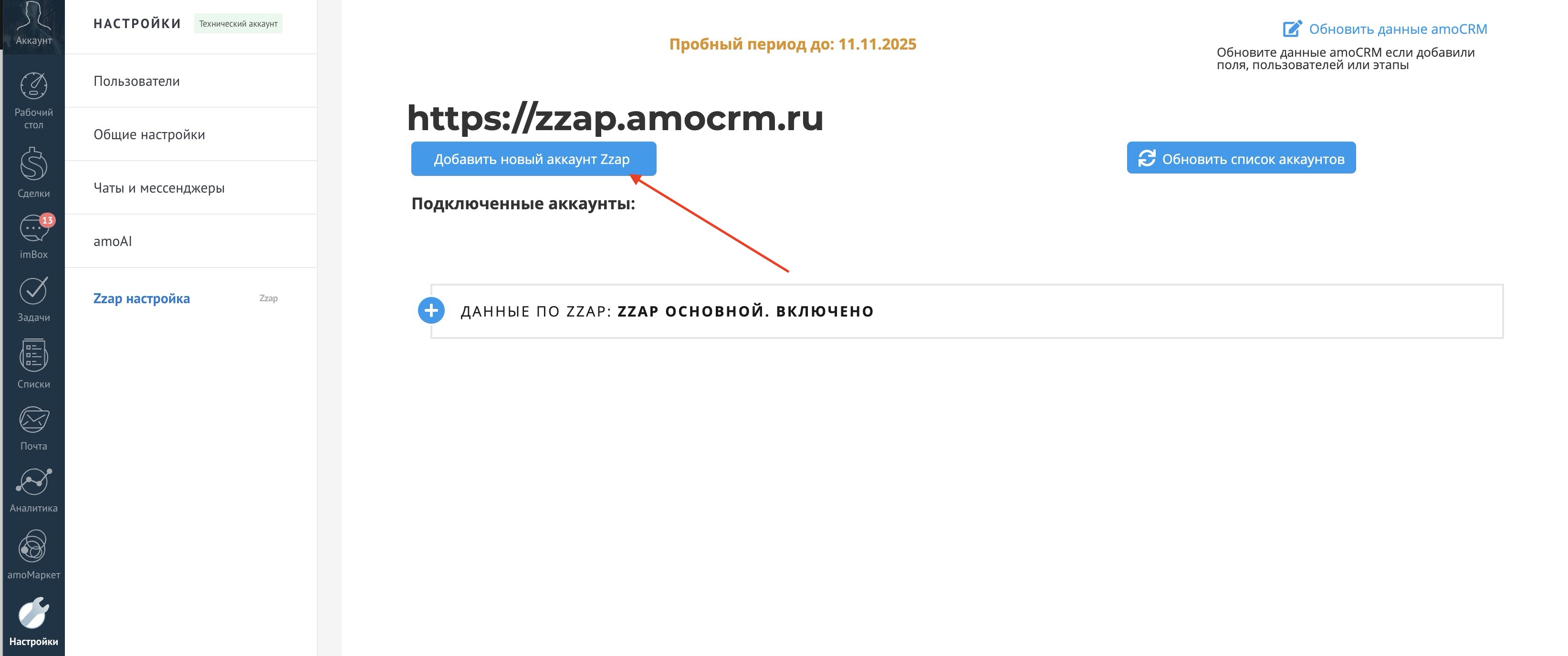 1. После установки перейдите в раздел настройки вашего аккаунта amoCRM